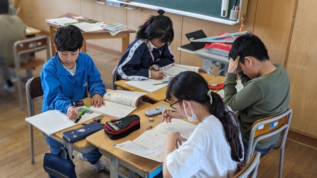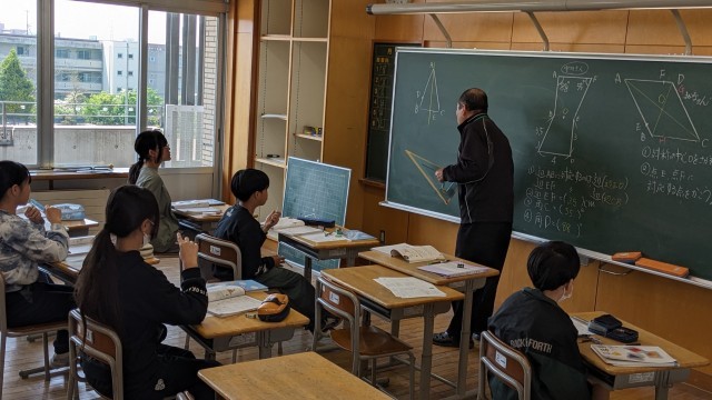 点対称となる図形の性質を学びました。コース別学習で取り組んでいます。