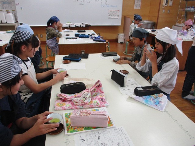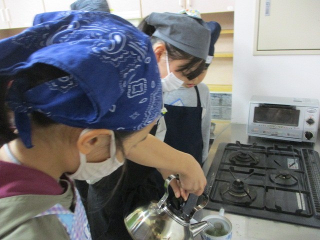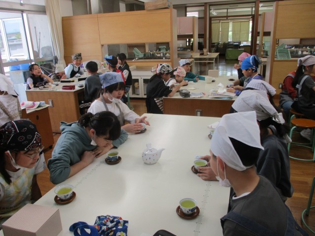 家庭科の調理実習でお茶を入れました。美味しくいただき、グループのメンバーで協力して片付けまでしっかりと行いました。
