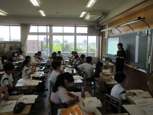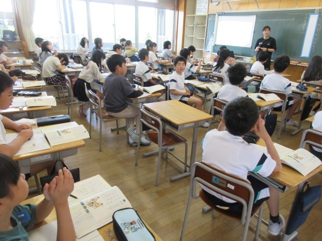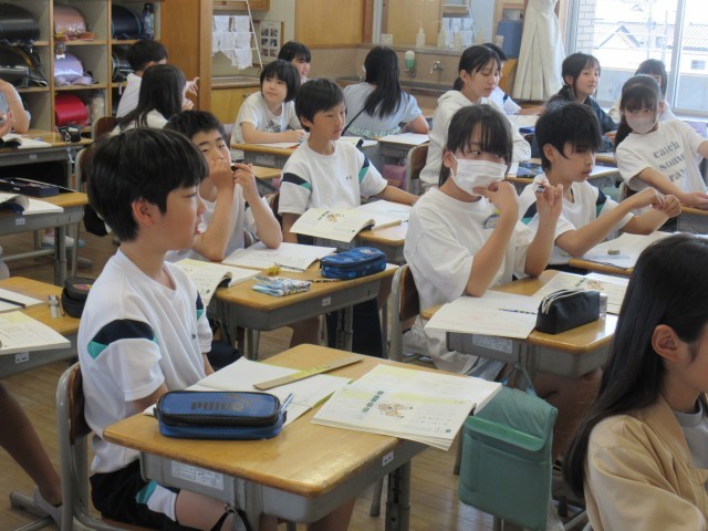 「きいて、きいて、きいてみよう」の学習の様子です。この学習では、「話して」「きき手」「記録者」に分かれてインタビューをすることで、目的意識をもって様々な「きく」を経験します。