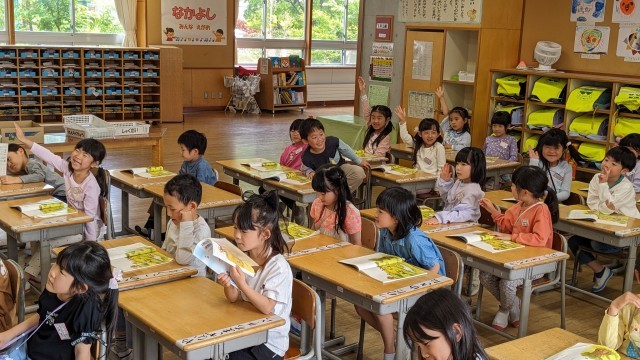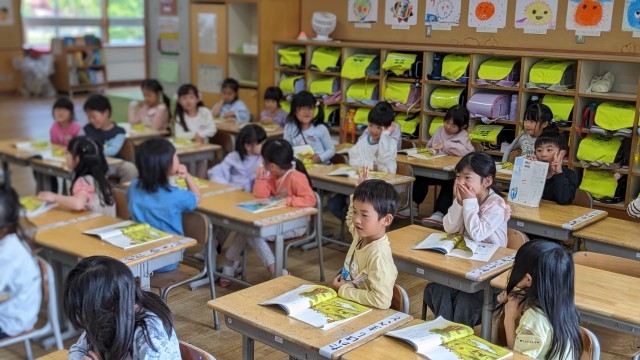 挿絵を見ながら動物たちがどんなお話をしているか想像して表現しました。