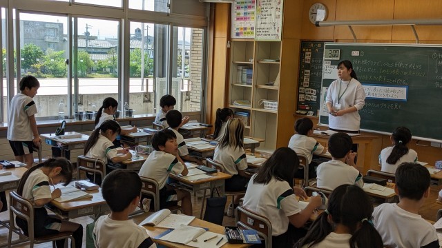 折れ線グラフの表し方について、時間が経つと量が変化していくということを考えました。