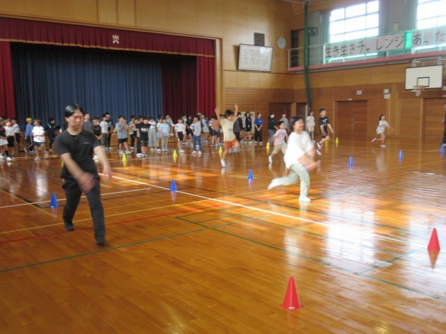 今朝も朝のトレーニングに大勢の子供が参加しました。今日は、空中で足を素早く入れ替えることや、腕を引くこと等を意識して練習しました。