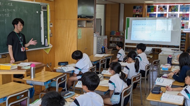 少数のかけ算の学習に取り組みました。元にする量 ✖️ いくつ分という考えで式を作りました。