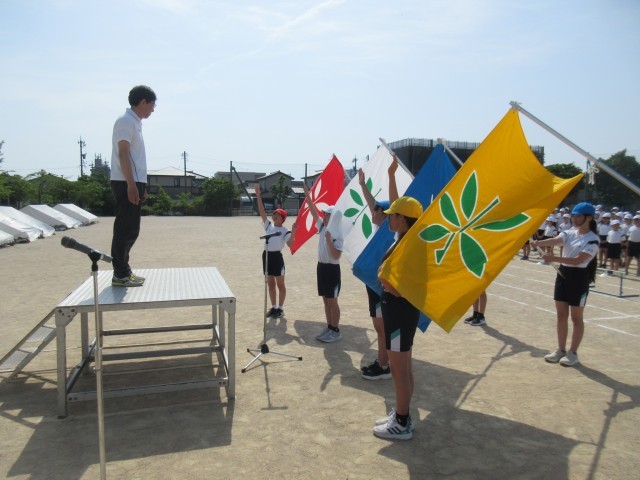 開閉会式の様子です。校長先生のお話では、運動会を行う意味について考えました。