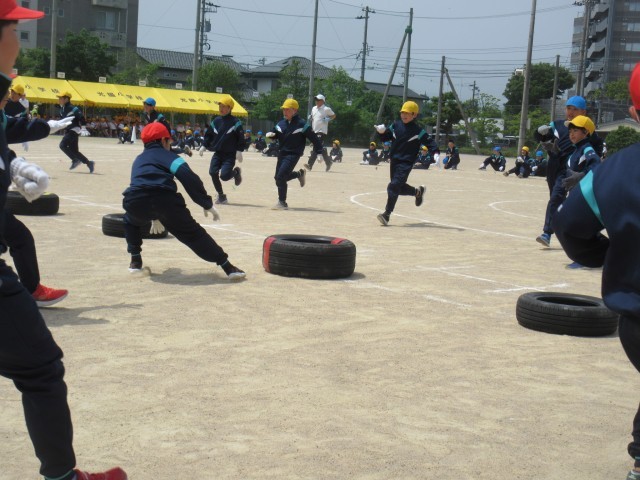 5、6年生の団体競技の様子です。今日は予選を行いました。どの団も気合い十分、白熱した戦いが繰り広げられました。
