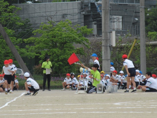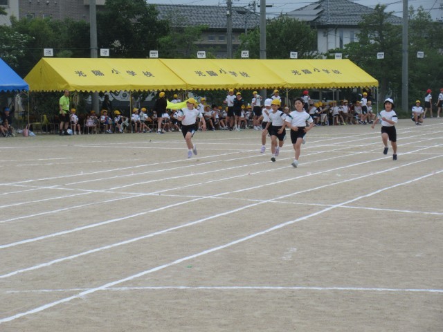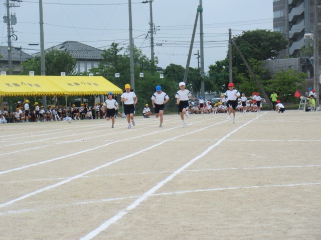 個人走の様子です。1~3年生は50m、4~6年生は70mを走りました。係の子供たちも一生懸命に仕事をしていました。