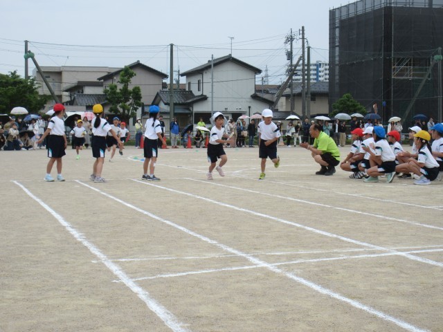 選抜リレーの様子です。各学年の代表がバトンをつなぎ、力一杯走りきりました。