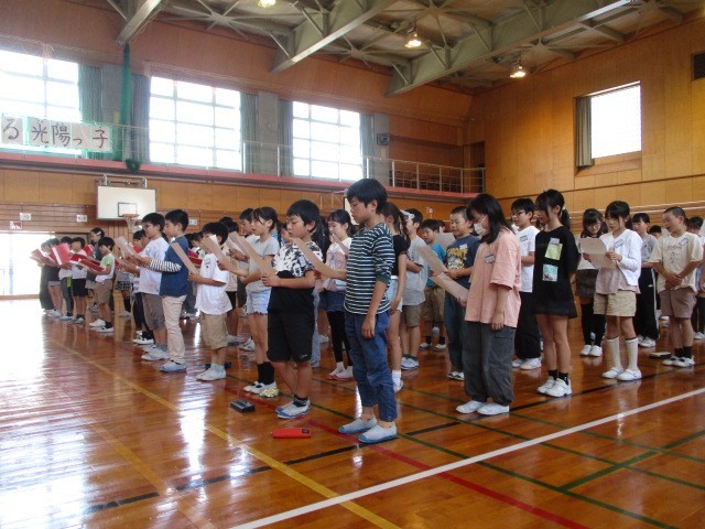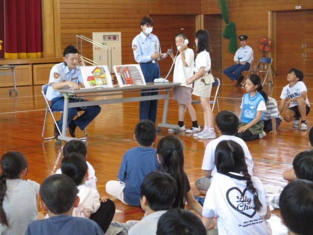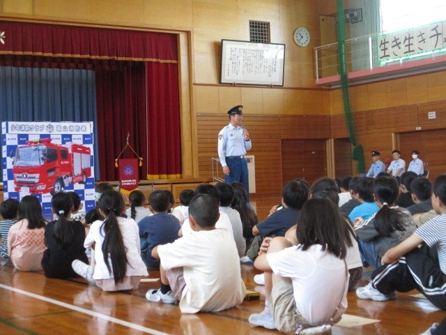 BFCバッジ授与式がありました。消防署の方の話を聞いたり通報体験をしたりして、防火に対する意識を高めました。