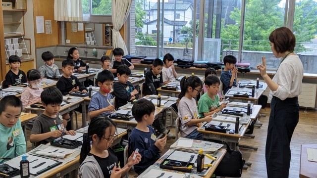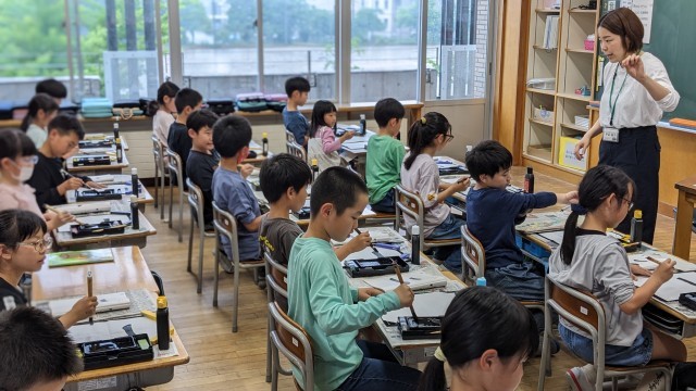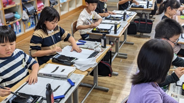 墨の付け方や筆の動かし方に気をつけながら、毛筆で横画を書きました。