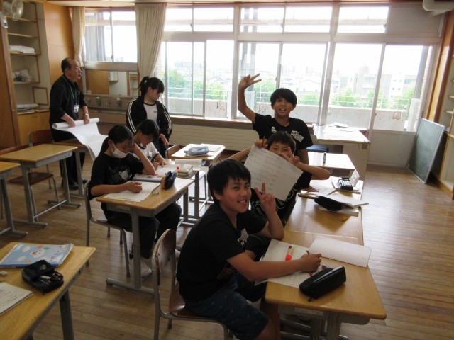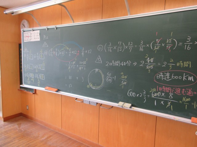 分数のかけ算を学びました。かける数が1より大きい分数と1より小さい分数のときの積を比べて、違いを考えました。