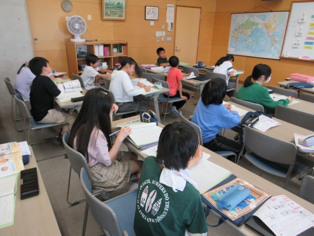 週末の過ごし方について、英作文をしたり話したりする学習に取り組みました。