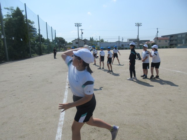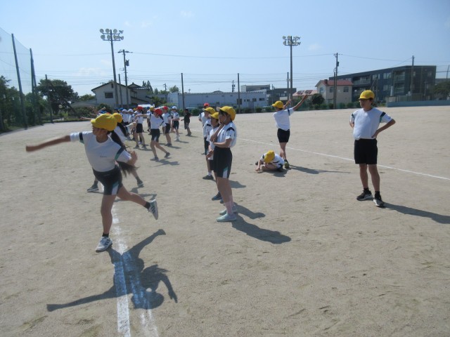 来週の体力テストに向けて、ソフトボール投げの練習をしました。自己ベストが出るとよいですね。