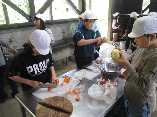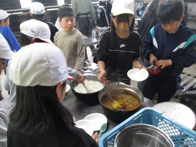 みんなで協力し、とてもおいしいカレーライスが出来上がりました。たくさんおかわりし、食べキリンしました。