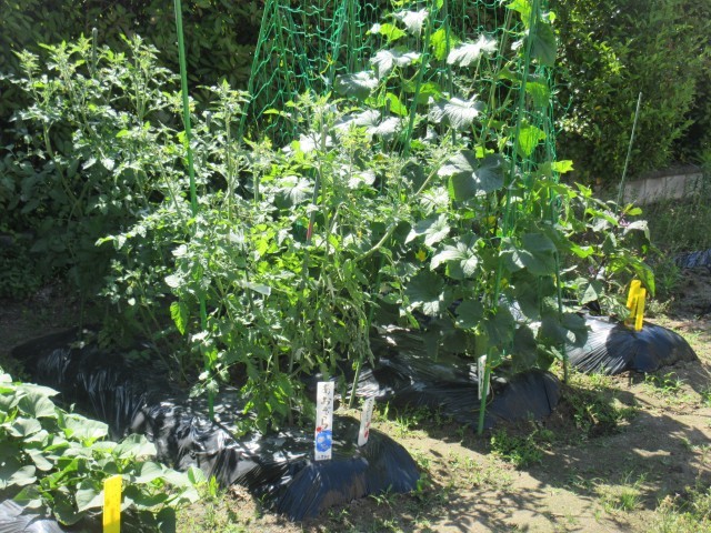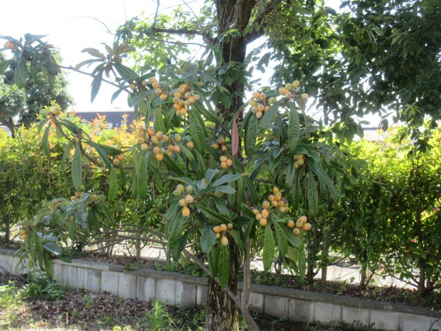 暑くなり、畑の野菜がぐんぐんと大きくなってきました。ビオトープの近くにあるびわも、たわわに実っています。