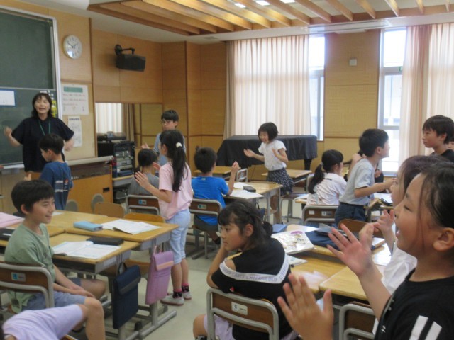 クラッピングに挑戦しています。楽しくて、思わず全身でリズムをとる姿も見られました。
