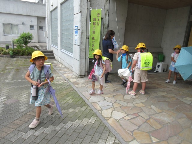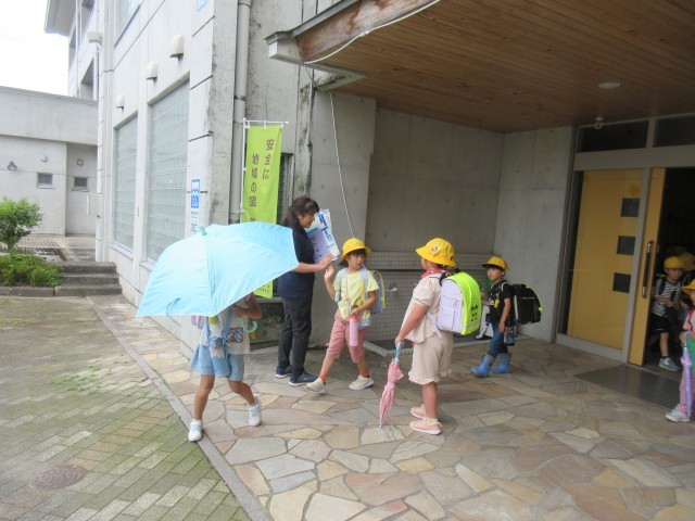 担任の先生と元気よくハイタッチをして帰って行きました。暑い日が続いていますが、今日も一日よくがんばりました。