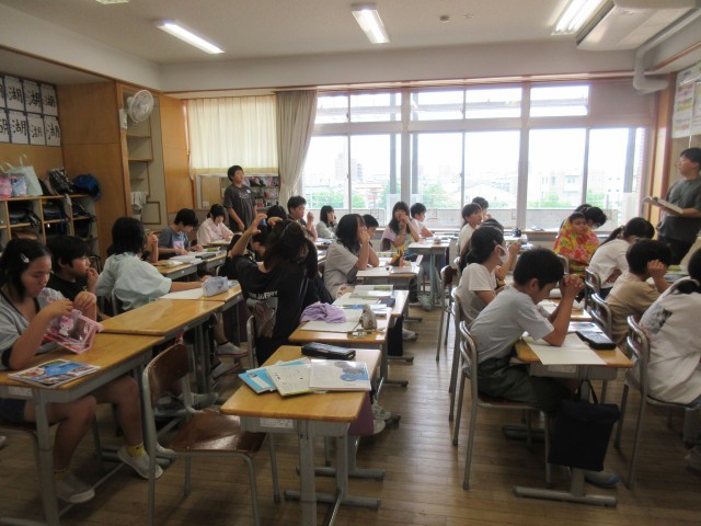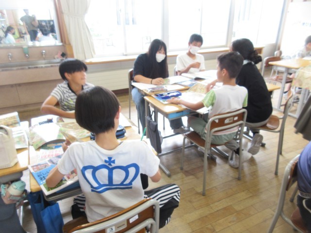 4限目の様子です。1組も2組も社会科の学習中。縄文時代のくらしについて、イラストを見て気付いたことを話し合いました。