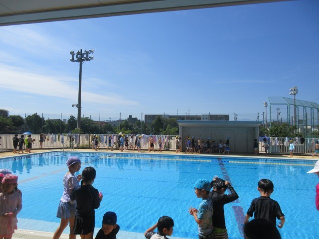2限目にプールに入りました。グループに分かれて、水に親しみました。「地獄のシャワー」にも慣れてきました。