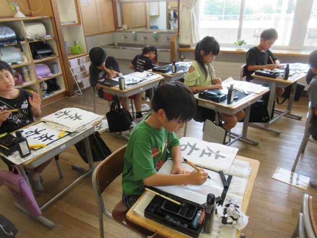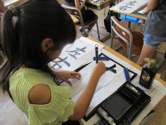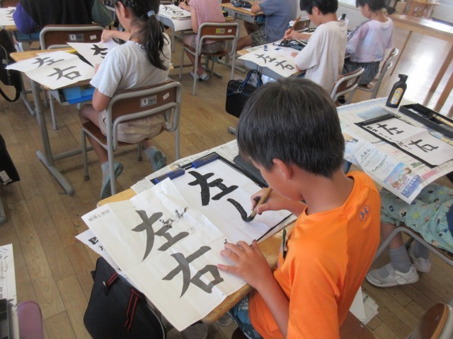 今日は、デジタル教科書の動画を観た後、筆順と字形の関係に気を付けて、「左右」の清書をしました。