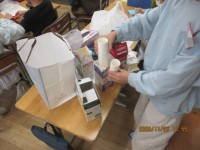 ゴムや風の力を利用して動くおもちゃ作りをします。今日はビニル袋を材料にして、どん...