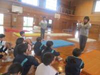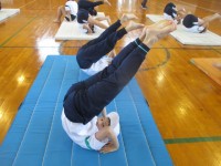 指導員の方に来ていただき、マット運動をしました。美しい後転や開脚技...