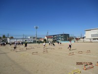 ハードル走のタイムを計りました。タイムを上げようと、最後まで力いっぱい走りまし...