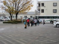1組の子供たちは、元気に富山スケートセンターに向けて出発しました。
