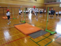 体育科の学習で、走り高跳びに取り組んでいます。踏み切り足や振り上げ足をたしかめま...