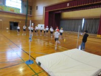 走り高跳びの学習に取り組みました。はさみ跳びでタイミングよく足を振り上げるイメー...
