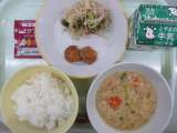今日の献立は、ご飯、牛乳、あっさりチキン、ゆでキャベツ、秋のかおりシチュー です...