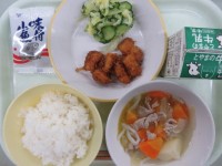 今日の献立は、ご飯、牛乳、いかのかりん揚げ、きざみ和え、塩肉じゃが、味付け小魚 ...