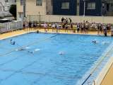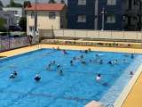 夏空の下、子供たちはプールで元気に水に親しんでいます。