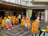 あゆみを片手に子供たちは下校です。教員が玄関までお見送りしています。明日からいよ...
