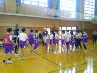クラス内で2チームに分かれ、八の字跳びの回数を数えました。温かい雰囲気で長縄跳び...