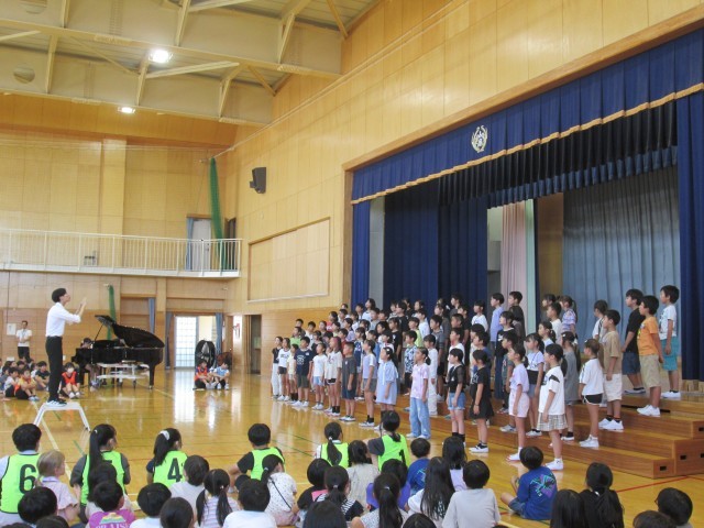 音楽会2日前、校内発表会を行いました。全校、保護者の前での発表に緊張しながらも一生懸命歌っていました。今日の発表を振り返り、連合音楽会に向かっていきましょう。