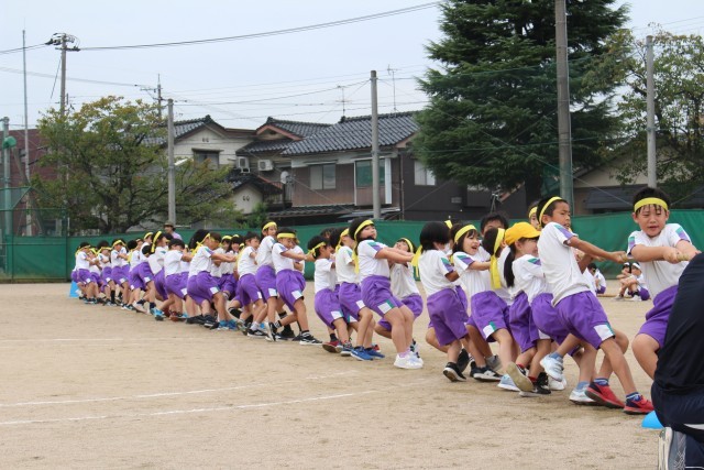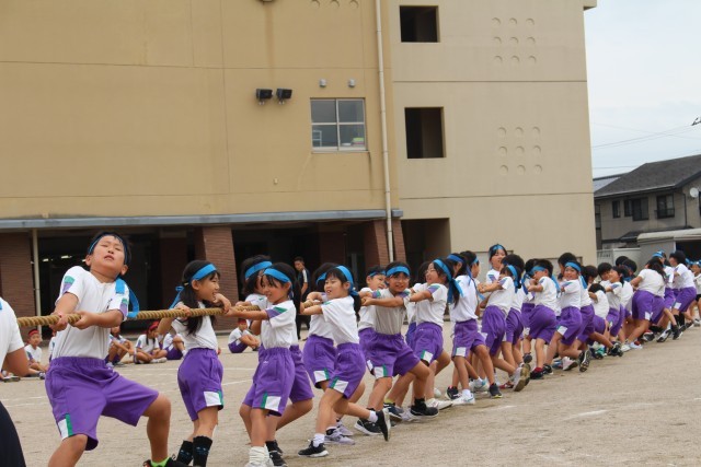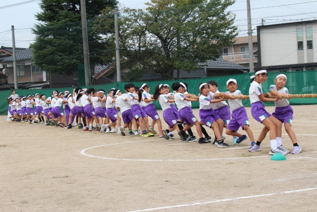 運動会の予行練習では、中学年の綱引きの予選が行われました。どの団も、協議の前に全員でかけ声をかけ気合を入れて、一人一人が精いっぱいの力を込めて引きました。土曜日の決勝戦、3位決定戦も頑張ります。