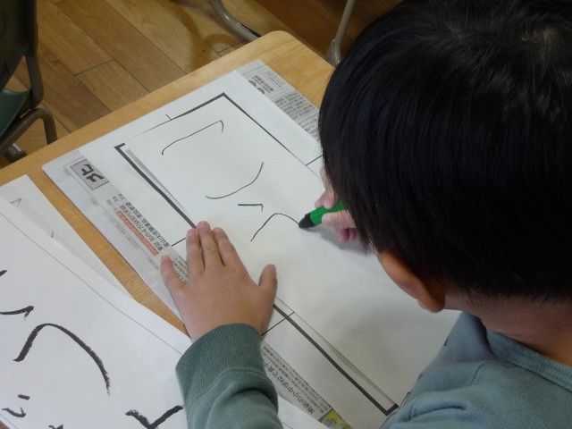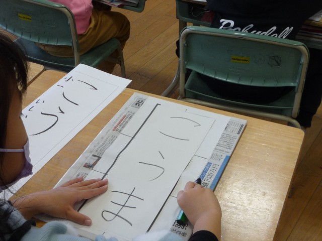 書き初め練習が始まりました。1年生は硬筆墨で「こうま」と書きます。