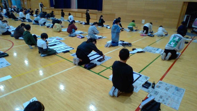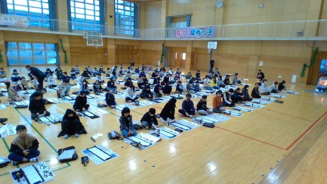1年の学習の始まりである「書初大会」が開催されました。練習の成果を発揮しようと、真剣に取り組む姿がみられました。