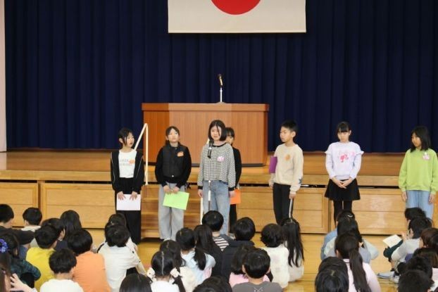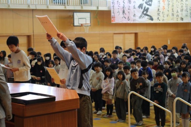 一年間の学校生活を締めくくる修了式を行いました。はじめに、それぞれの学年・学級の代表児童に修了証を校長先生から渡しました。どの子も背筋をぴんと伸ばし、堂々とした姿勢で修了証を受け取っていました。校長先生からは、「春休みは短い期間ではあるけれど、目標を立てて、規則正しい生活をしましょう」とお話をされました。目標をもって過ごすと、日々の生活が前向きなものになり、そして活力が出ますね。そして、式後には、3年生と5年生の代表児童がこれまでがんばったことや成長したことについて発表しました。リコーダーを実際に吹いて聴かせてくれた子、暗記してしっかりと前を向いて話す子、他どの子もこれまでの努力と成果を胸をはって発表してくれました。