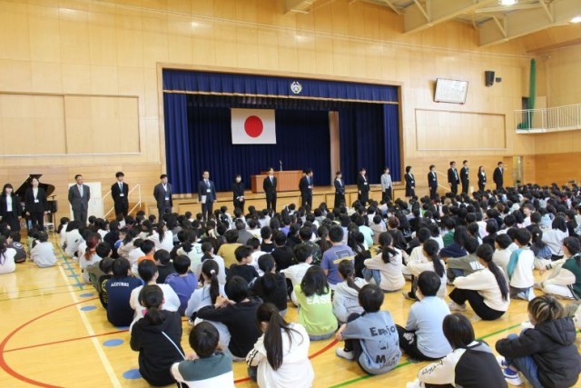 着任式の後は、始業式を行いました。校長先生からは、蘭秀っ子たちへの目当てとして「自分で考え、自分から動く」という言葉をくださいました。よりよい自分、よりよい集団を目指して、進んで考え、行動していきましょうね。校長先生のお話の後は、子供たちの大きな関心事である担任の先生の発表です。これから一年間お世話になる先生と目をしっかりとつなぎながら、大切な出会いの場を共有しました。最後に校歌斉唱。いつもながら大きな歌声が体育館に響き渡りました。