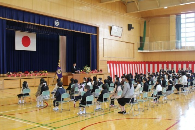 ぴかぴかの一年生を迎え、入学式を行いました。保護者や地域の方々、教職員、そして5年生・6年生が見守る中、1年生はちょっぴり緊張しながらも堂々と会場に入場しました。そして校長先生や来賓の方のお祝いの言葉を背筋をぴんと伸ばして聞く姿がとても立派でした。歓迎の言葉では、児童代表が「困ったことがあればいつでも声をかけてください」と笑顔で語りかけました。