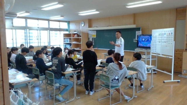 6年生 外国語 Unit1 This is me! 公開日 2026/04/24 更新日 2026/04/24 6年生 「This is me!」の学習をしています。 今日は、教科書の登場人物たちが自分の好きな物や宝物について紹介する英語を聞き取りました。