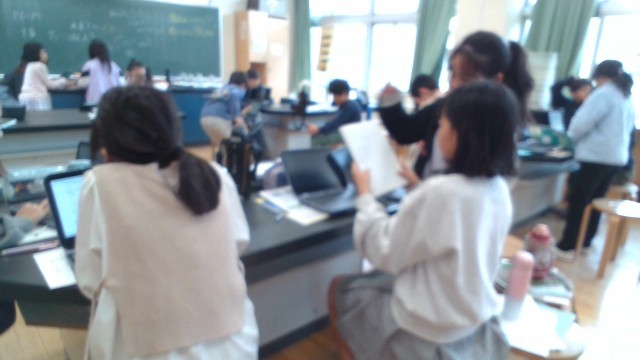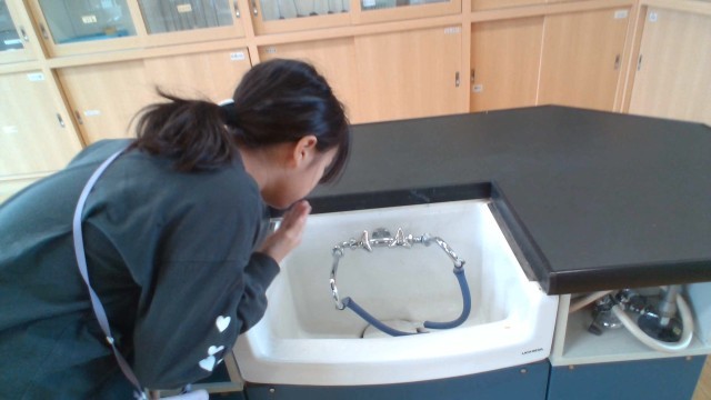 理科室に入った瞬間、子供たちが気づいたのは水道付近の不思議なにおいでした。