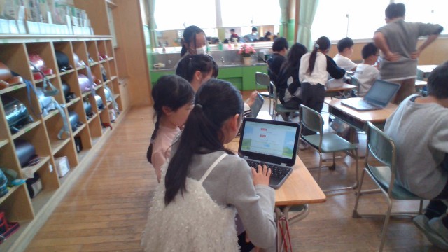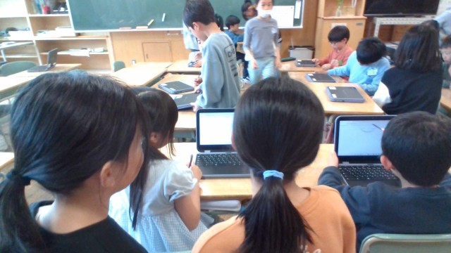 5年生が、3年生クロームブックの使い方を教えました。 初めて操作する3年生にも分かりやすいよう、言葉を選んで丁寧に教える姿は、まるでお兄さん・お姉さん先生のようです。理科室の課題解決に続き、自分たちのスキルを誰かのために役立てようとする5年生。 相手の立場に立って行動できる優しさと頼もしさが、学校中に広がっています。教え合い、学び合う5年生、いいね!