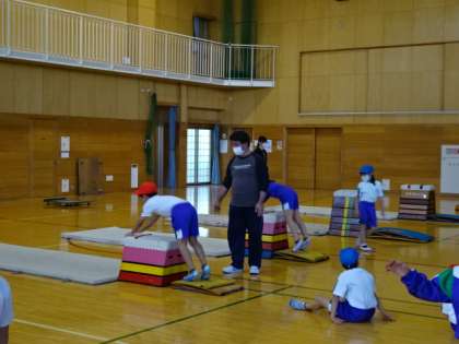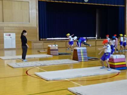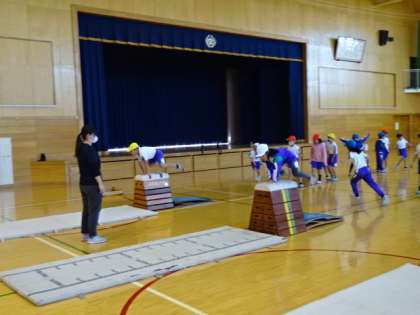 とび箱の練習です。自分の力に合わせた段で「それっ!」