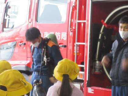 社会見学で消防署に行ってきました。消防士の方のお話を真剣に聞いてメモを取っていました。社会見学を通して、これまで以上に消防士の仕事について知ることができました。