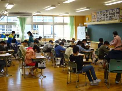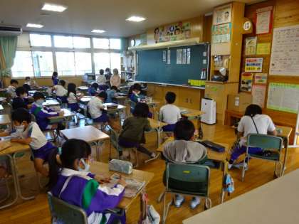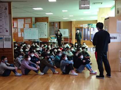 朝の活動時間、学年集会をしていたり、学びの時間にしていたりします。
