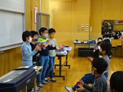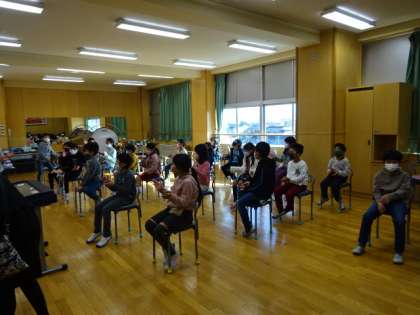 リズム打ちの練習。リズムに合わせて打てたかな。