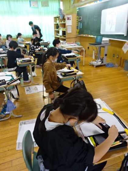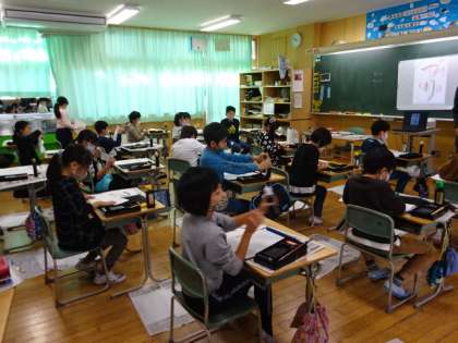 今日、書くのは「つり」という字です。まずは、墨汁を入れて・・・