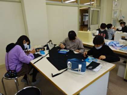 ミシンを使って、エプロン作りです。